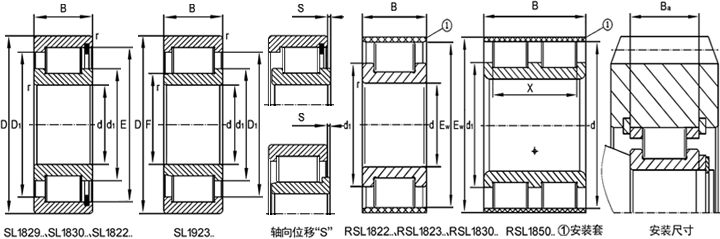 Single-row full complement cylindrical roller bearing consists of inner ring, outer ring and cylindrical rollers. Because as many rolling elements as possible are placed, the bearing has extremely high radial bearing capacity and rigidity, and is particularly suitable for compact structural design. However, limited by kinematic conditions, this kind of bearing cannot reach the limit speed of cylindrical roller bearing with cages. Single-row full complement cylindrical roller bearings are semi-positioning bearings.
