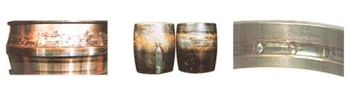 - 內(nèi)圈、外圈、滾動(dòng)體以及保持架在旋轉(zhuǎn)中急劇發(fā)熱直至變色、軟化、熔敷和破損
